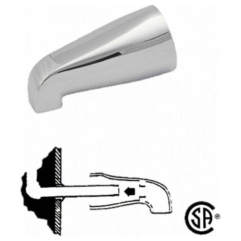 THIS PRODUCT INCLUDE(S): 1x tub spout in chrome color (34978). TUB SPOUT – 0.5 OR 0.75 FIP AT NOSE. CHROME PLATED BRASS. CSA. This tub spout features a spout shape with a modern style. This product is made for wall mount installation. DIY installation instructions are included in the box. This tub spout is made with brass. CSA certified. Most city inspectors require the use of certified products to get approval. The primary color of this product is chrome and it comes with chrome hardware. 5.38-in. Width (left to right). 2.75-in. Depth (back to front). 8.38-in. Height (top to bottom). All dimensions are nominal. This product can usually be shipped out in 1 day. Quality control approved in Canada. Each box on your order is physically opened-up and inspected to make sure only the highest quality product is shipped. We take and store photos of every single quality audit of every single order we ship. You can see them when you track your order on our website.