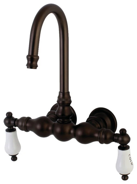 Kingston Brass AE3T5 Aqua Vintage 3-3/8 Inch Wall Mount Tub Faucet, Oil Rubbed BronzeWall mount clawfoot tub faucets are the perfect fixture to add decorative flair within your bathroom because of their unique architectural elements. With vintage opulence, this will complete your refined bathroom decorum with the help of its premium oil rubbed bronze finish. The solid brass construction also makes for a heavy, quality made product.Product Dimension : 9.25″L x 9.13″W x 4.5″H, Item Weight (lbs) : 5.37