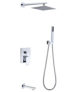 ALMA EMPOLO SHOWER SET W / 8″ SQUARE RAIN SHOWER AND TUB FILLER- BRUSH NICKEL-CUPC/ NSF61 / AB1954