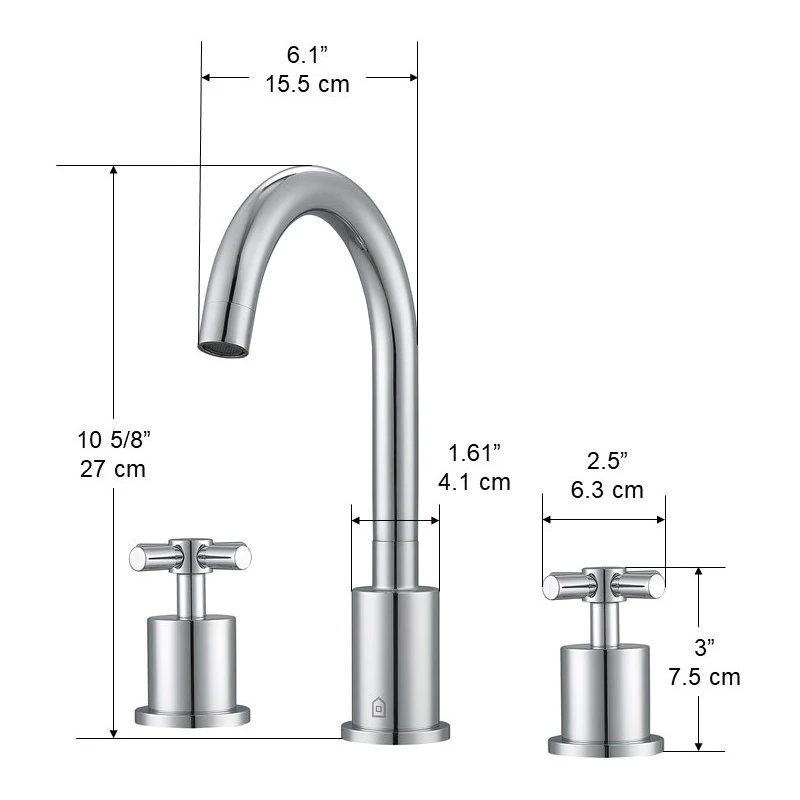 - Faucet Dimensions (W x H): 15.2 cm x 27 cm (6 in. x 10.625 in.)