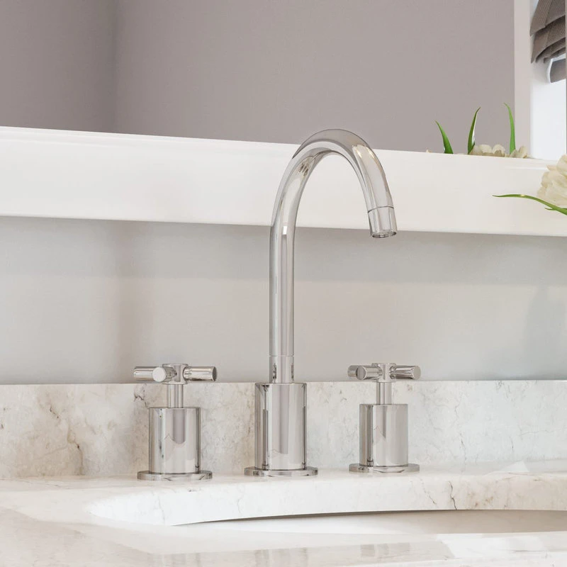 The Prima 3 faucet is Ancona’s latest offering for the bath. The Prima 3 beautifully combines the modern high-arc design with the retro-inspired cross handles. The simple yet elegant design suits both a modern or classic bathroom décor. The high-quality chrome finish and solid brass construction is a testament to Ancona’s commitment to quality at an affordable price. Pair it with an Ancona Prima 4 bathtub faucet (sold separately) to complete the look.
