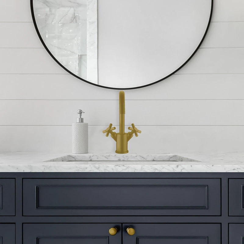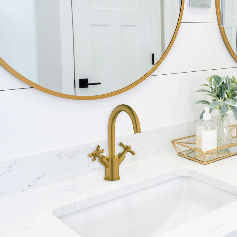 The Prima Colori Single Hole Bathroom Faucet in Brushed Titanium Gold with its sophisticated cross handle design will instantly deliver a modern spin to any bathroom dΓ©cor. Constructed in solid brass with a brushed gold finish this elegant two-handle faucet features an arched spout design for easy water flow control. Let the Ancona Prima Series bring life to your home!