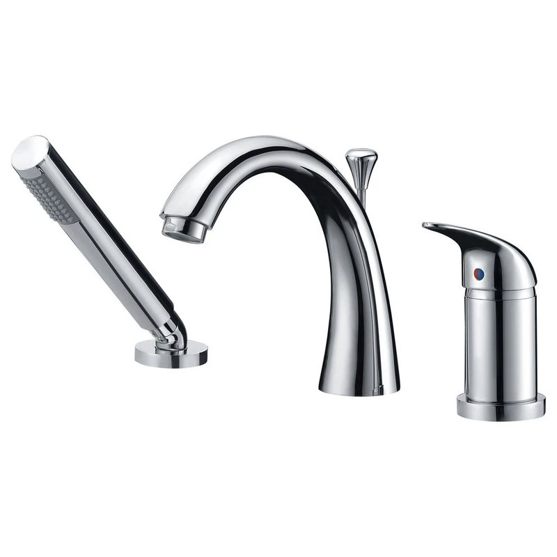 Update your bathtub with our ANZZI Den Series single handle deck mounted Roman bathtub faucet with handheld sprayer in polished chrome. With a contemporary Italian design this tub filler has a smooth high arched spout, a single handle design and an easy to handle cylinder handheld sprayer. Aside from style and functionality, our Den series is RHINO ALLOY Certified Steel and engineered with Swiss precision.