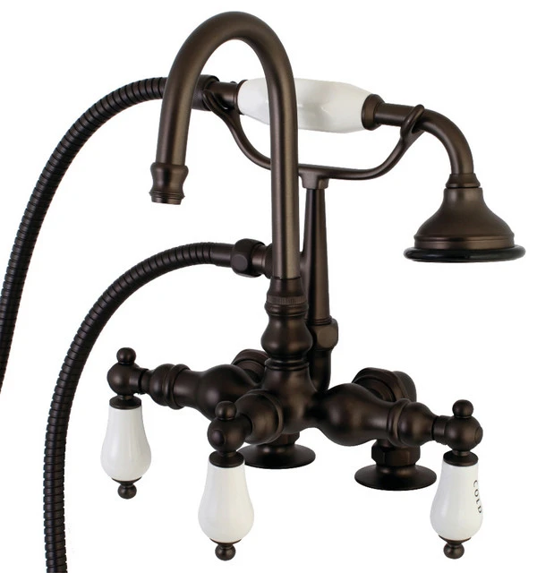 Kingston Brass AE17T5 Auqa Vintage Clawfoot Tub Faucet, Oil Rubbed BronzeVintage opulence finds itself within this deck-mount clawfoot tub faucet. As the perfect complement to your tub, this will complete your refined bathroom decorum with the help of its premium, glistening oil rubbed bronze finish and telephone style hand shower. The solid brass construction also makes for a heavy, quality made product.Product Dimension : 9.25″L x 7″W x 11.63″H, Item Weight (lbs) : 8.54