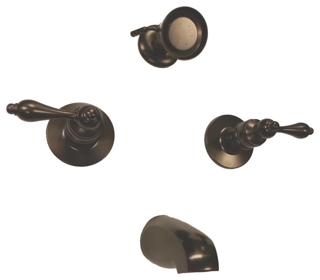 Banner Faucets Oil Rubbed Bronze Two Lever Handle Tub & Shower Faucet in a Traditional Style. Matching Shower Head, Shower Arm and Tub Spout with Diverter. Matching Lever Handles, Dome Cap and Face Plate. Solid Brass Valve Body, Handles and Tub Spout with Diverter. Pressure Balance Diaphragm Valve.
