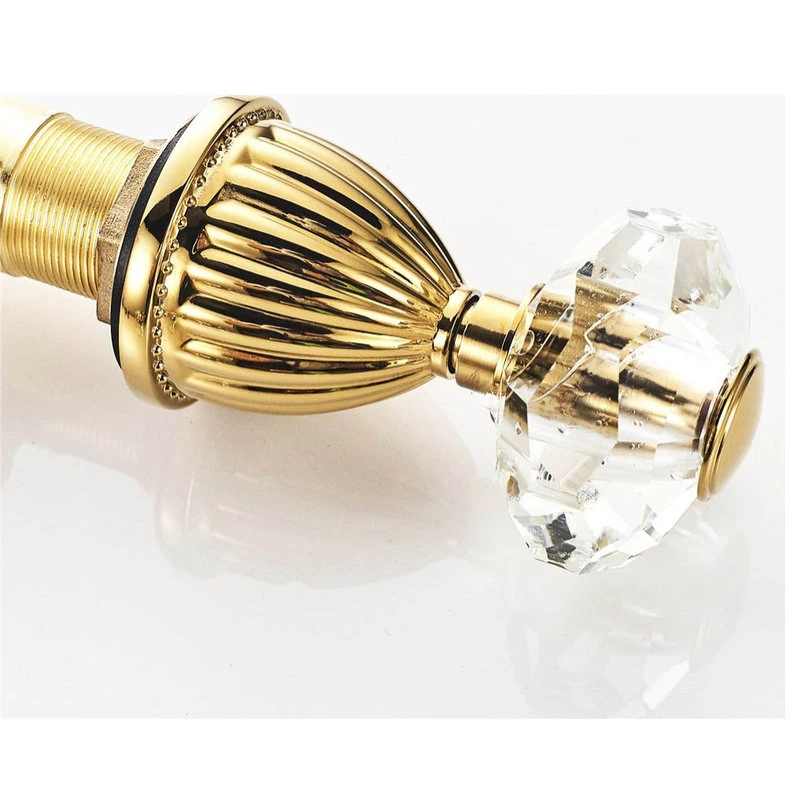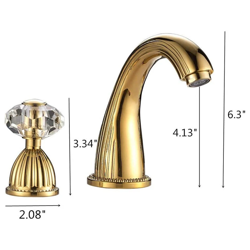Sheer elegance emanates from this beautifully crafted Lyon Bathroom Faucet. Finished in warm, lovely gold color and with two gorgeous crystal handles, this faucet is one stunning bathroom fixture that epitomizes luxury and sophistication. Meticulous up to the smallest detail, there is no doubting the excellent craftsmanship that went into the construction of this bathroom fixture. The appeal of the Lyon Bathroom Faucet also goes beyond its beautiful design features, as it also boasts of excellent functionality with dual handles for both hot and cold water. Furthermore, the whole fixture is made out of solid brass material which ensures durability and longevity of this bathroom fixture.