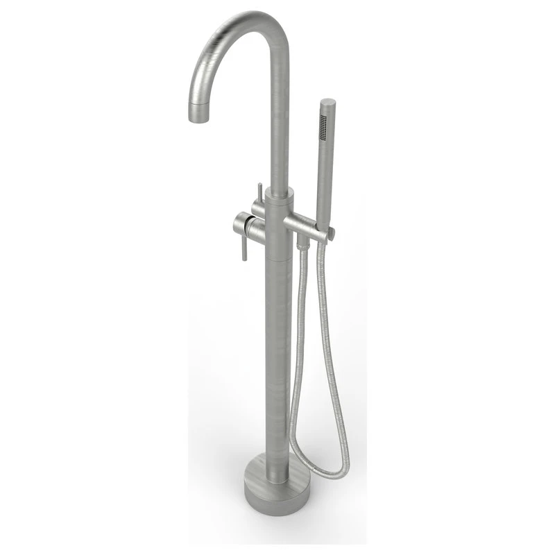 Castello USA Neptune Freestanding Tub Filler Faucet, Brushed Nickel, Standard Handle