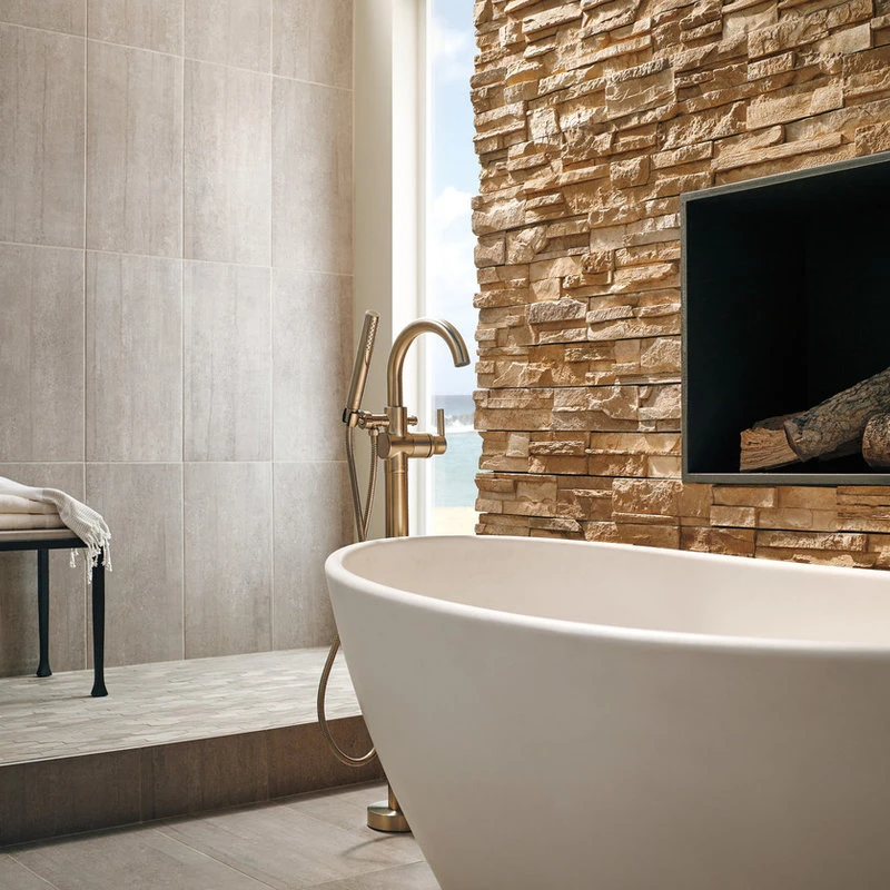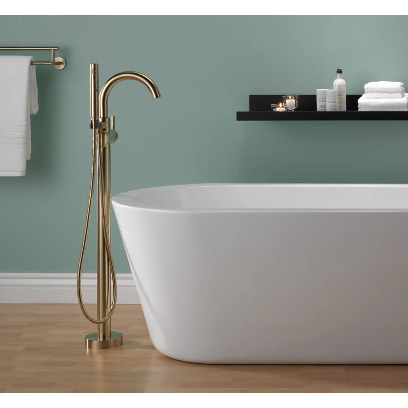 Complete your bath with a beautifully designed Delta roman tub faucet, meticulously crafted to turn heads and enhance your experience. The included hand shower makes this a versatile addition to your bath, perfect for rinsing off, washing loved ones and pets or keeping your tub clean. Designed to look like new for life, Brilliance finishes are developed using a proprietary process that creates a durable, long-lasting finish that is guaranteed not to corrode, tarnish or discolor. Take the chill out of contemporary with the eloquent warmth of Champagne Bronze in your bath. This vibrant, gold finish provides a vivid splash of contrast to your space for a look that’s simultaneously modern and nimble, able to pair elegantly with traditional, transitional and contemporary decor. Brilliance finishes are durable, long-lasting and guaranteed not to corrode, tarnish or discolor, so you can enjoy a coordinated bath you’ll love to look at for life. You can install with confidence, knowing that Delta faucets are backed by our Lifetime Limited Warranty.