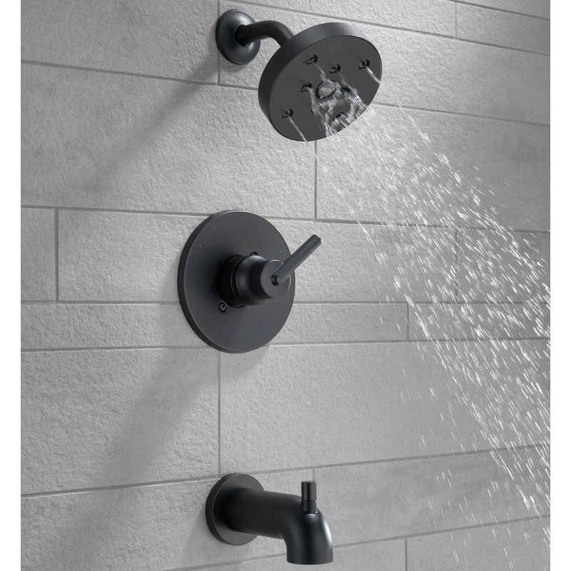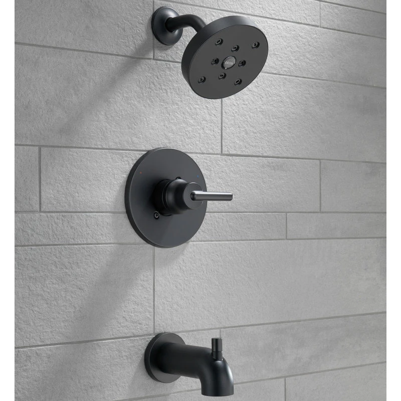 Inspired by the sleek elegance of modern European design, the Trinsic Bath Collection completes the look of any contemporary bath, from classic to rustic. Delta H2Okinetic Showers look different because they are different. Using advanced technology, H2Okinetic showers sculpt water into a unique wave pattern, giving you 3X the coverage of a standard shower head.* The end result is a shower that provides more coverage, more warmth and more intensity for a truly drenching shower experience. Delta pressure-balance valves use Monitor Technology to protect you and your family from sudden temperature changes. Matte Black makes a statement in your space, cultivating a sophisticated air and coordinating flawlessly with most other fixtures and accents. With bright tones, Matte Black is undeniably modern with a strong contrast, but it can complement traditional or transitional spaces just as well when paired against warm nuetrals for a rustic feel akin to cast iron. Delta WaterSense labeled faucets, showers and toilets use at least 20% less water than the industry standard saving you money without compromising performance.