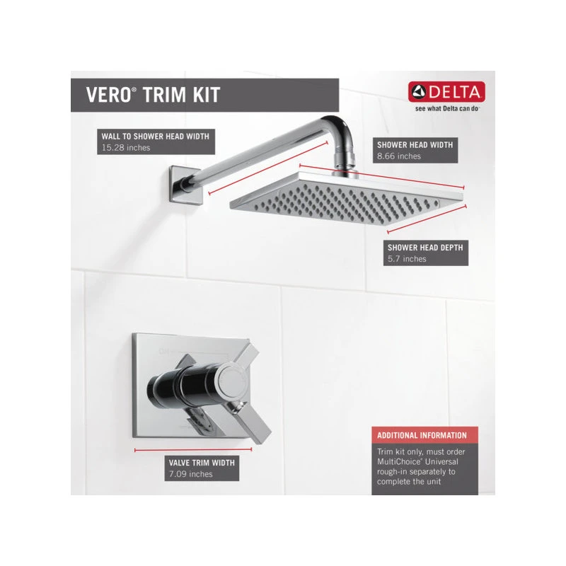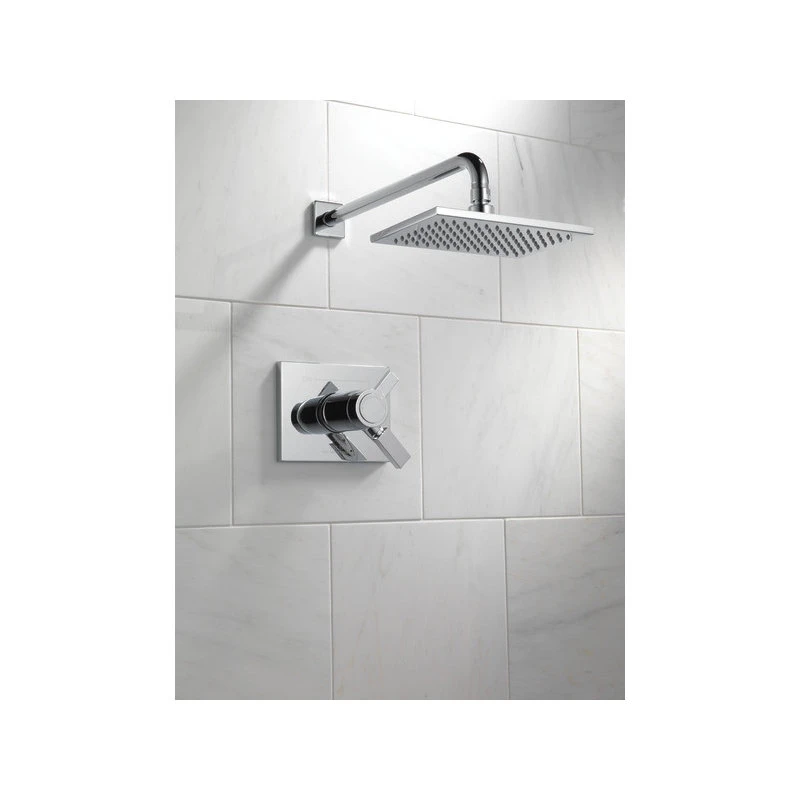 With separate handles for volume and temperature control, this Delta tub/shower provides a more refined showering experience. Simply set the water at your preferred temperature and turn the shower on or off with the volume control handle – without interrupting your set temperature. While other products may gather unsightly mineral build-up over time, Delta soft rubber Touch-Clean spray holes allow any mineral residue to simply be wiped away for an instantly refreshed look with no need for soaking or the aid of chemical cleaners. Delta thermostatic valves use TempAssure Technology to protect you and your family from sudden temperature changes. Chrome has rapidly become one of the most popular finishes across decor styles in the bath thanks to its stunning gloss and innate versatility. Paired with crisp lines and bright whites, it creates a bold, modern contrast, but it works equally well with vintage styles and traditional spaces to convey a hint of nostalgia.