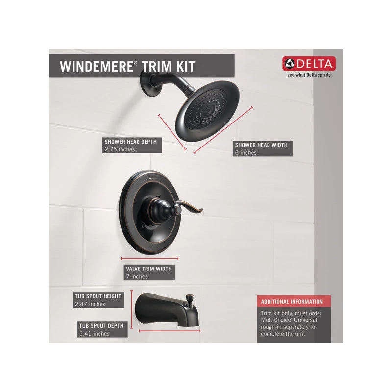 - Trim kit only, must order MultiChoice Universal rough-in separately to complete the unit