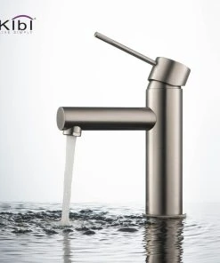 Kibi USA Circular X Brass Single Hole Bathroom Faucet KBF1010, Brush Nickel, With Drain