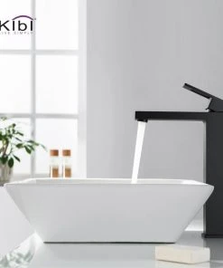 Kibi USA Cubic Single Handle Vessel Sink Faucet KBF1003, Matte Black, W/ Drain