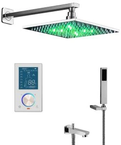 The Fontana Flavia Digital color changing led rainfall is a high tech elegant shower set. The shower head is made in stainless steel. The LED lights are changing colors depending on the water temperature, so you will always know when it is right for you. Their intensity varies according to the water pressure, creating a relaxing ambiance. All fittings are standard for easy installation. The shower arm is wall mounted, length 14. 5″ (37cm).
