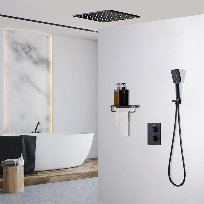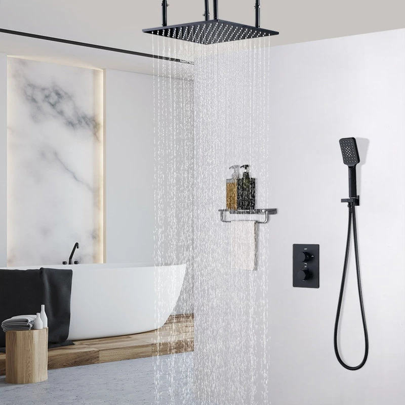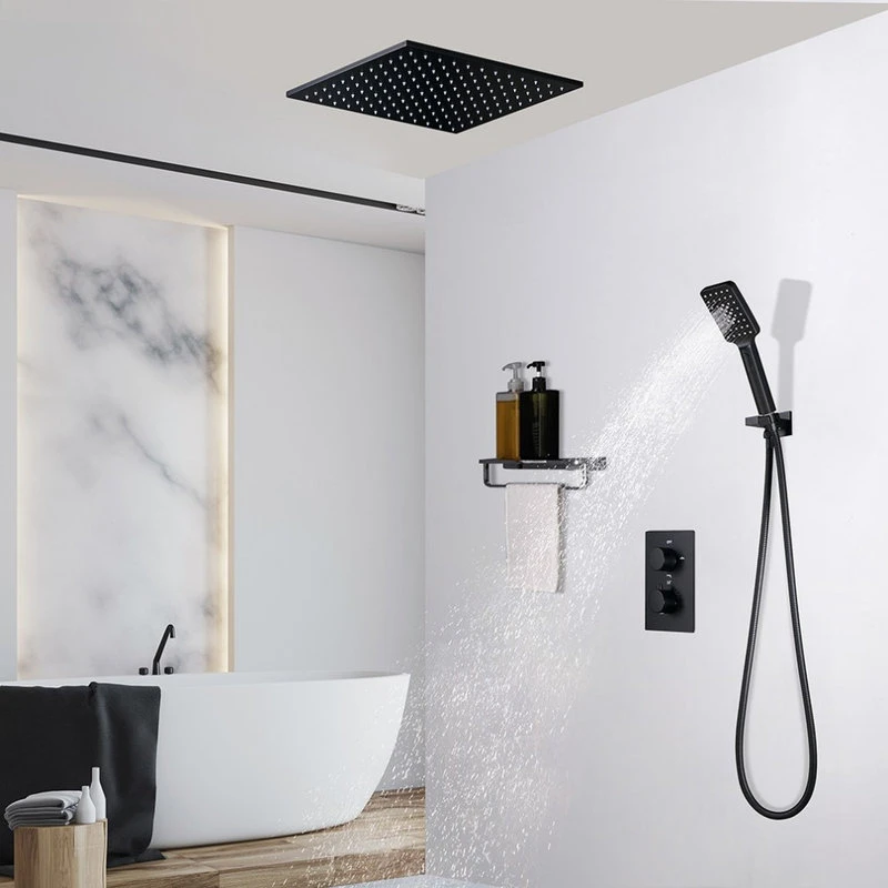 - Dual-Function: Square rain shower head provides full shower experience, hand shower offers focused spray for targeted cleaning and washing.