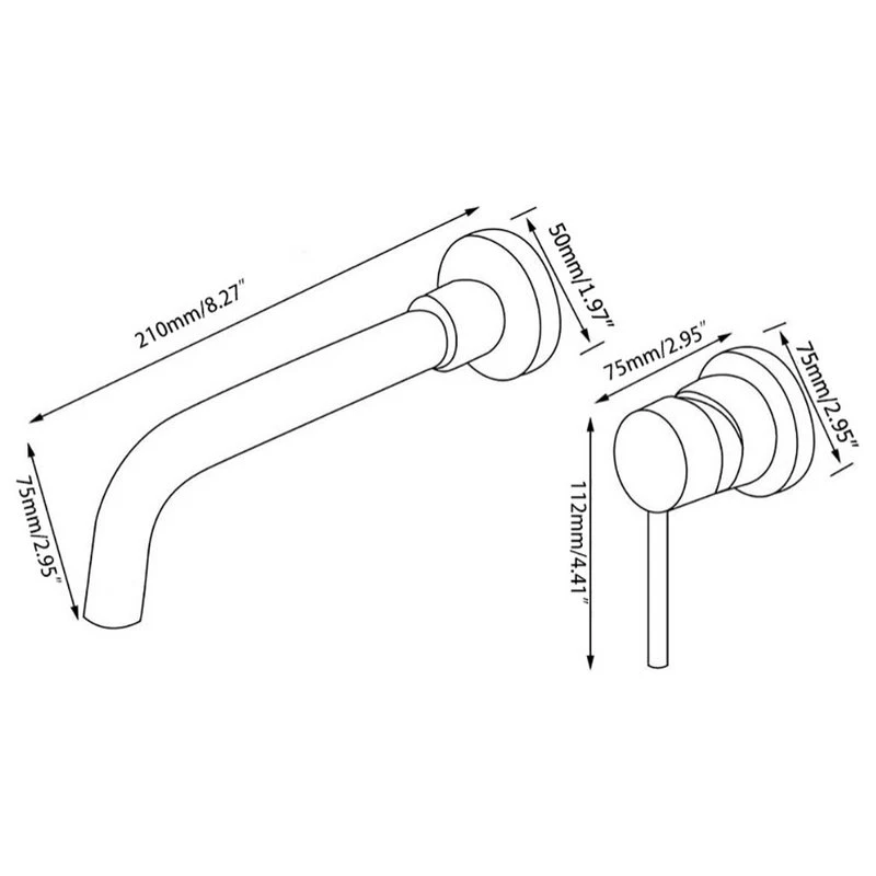 - Spout Reach (Measured From Faucet Base Center To Spout Outlet Center): 8.27″ / 210mm