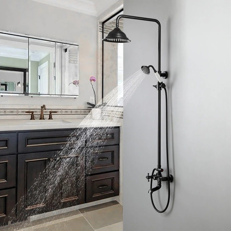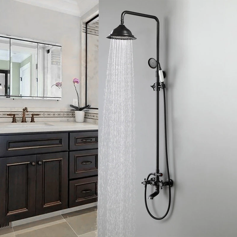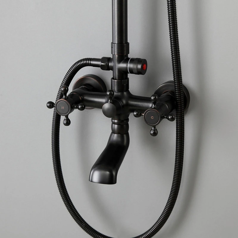 HOMARY Classic Bathroom Exposed Rainfall Shower System With Tub Spout Antique Black