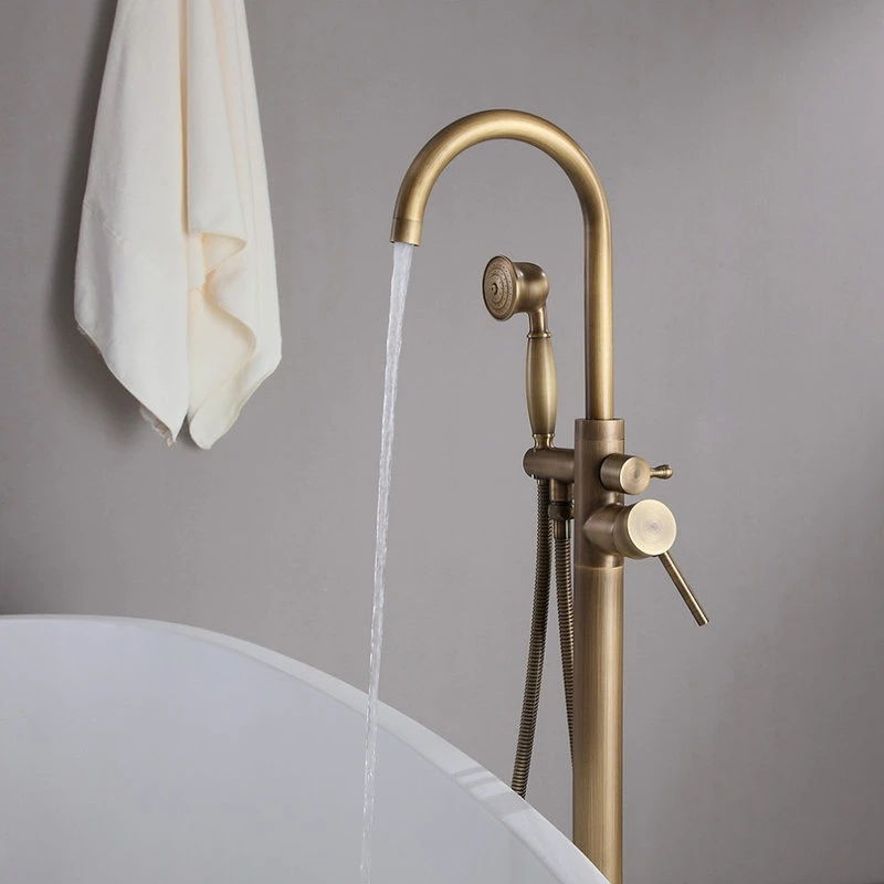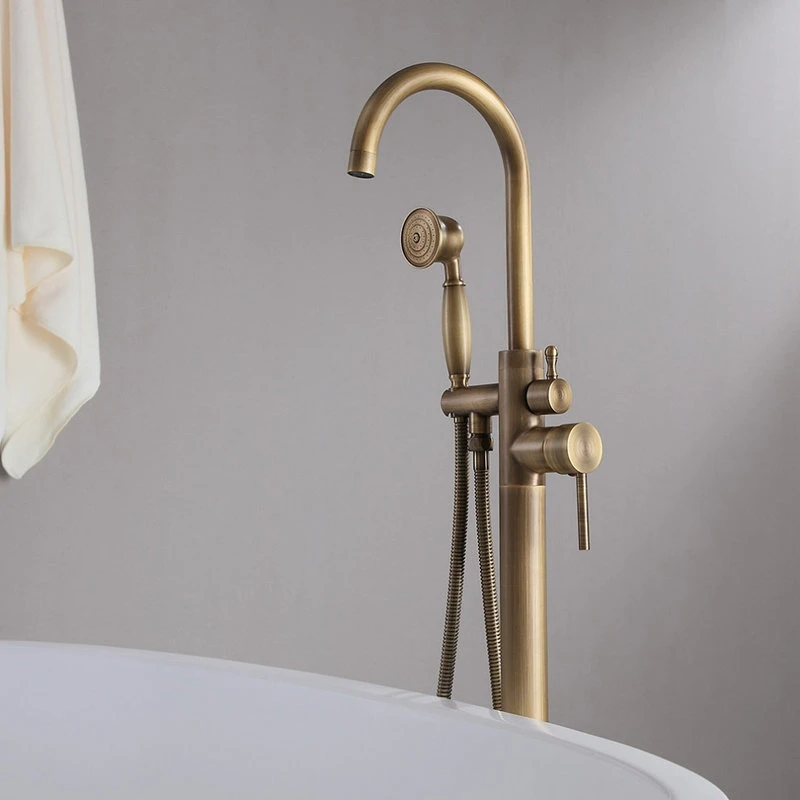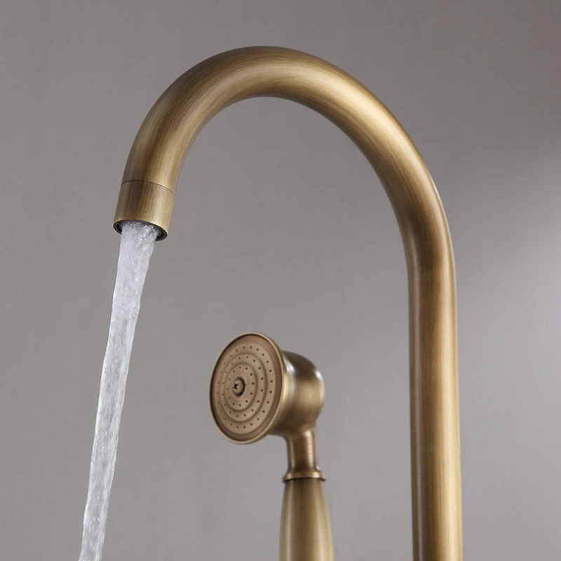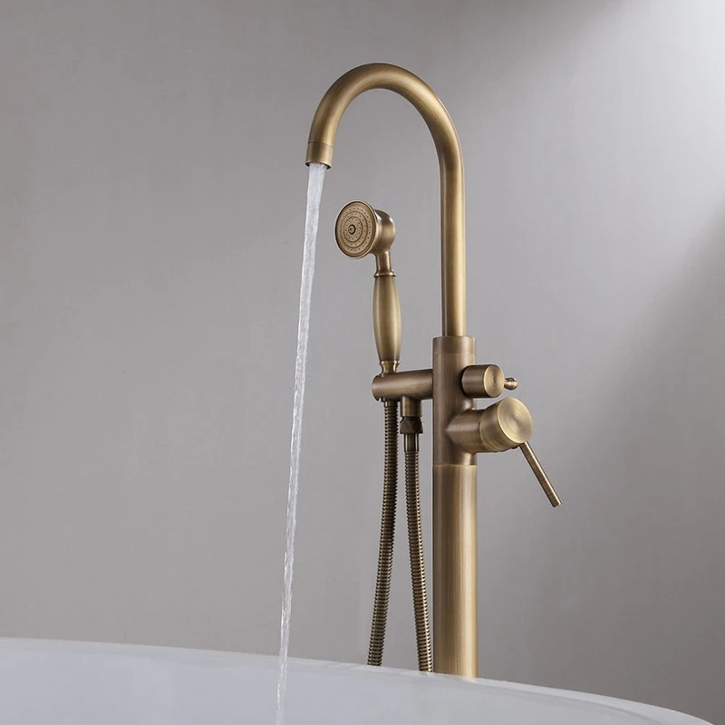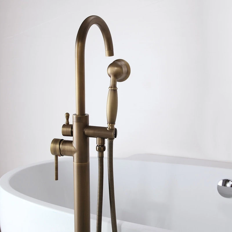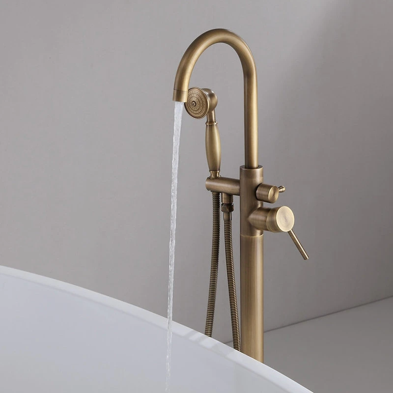 This beautiful freestanding tub faucet will fit seamlessly into any modern or classic bathroom. It features a streamlined styling with the straight lever handle, a clean, simple look. To fill the tub rapidly and easily, this design comes with a high-arc spout that can be rotated from left to right 360 degrees. The matching hand shower can provide more convenience for rinsing off after bath. Crafted for looks and built for reliability, this freestanding tub faucet is ideal for your bathroom!