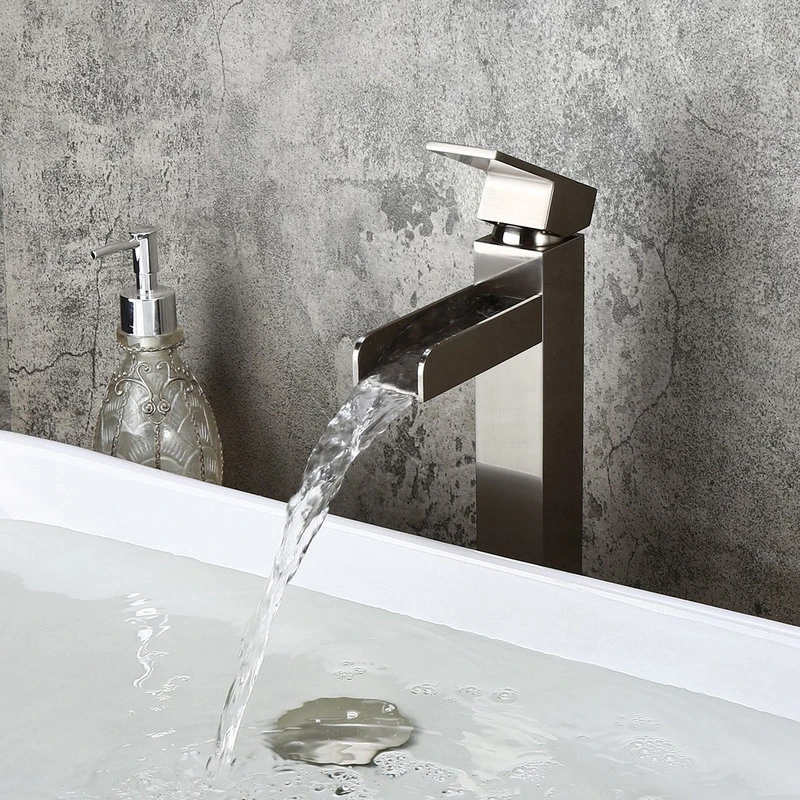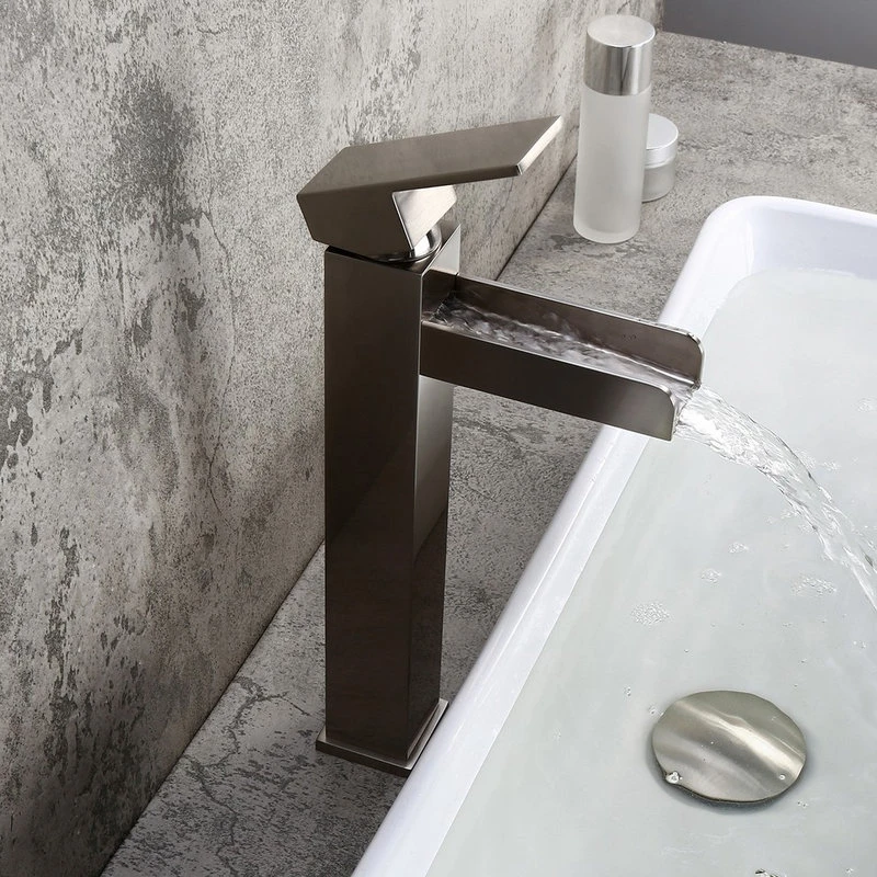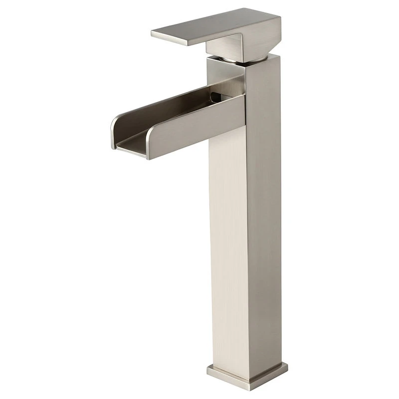 Modernize your bathroom with this contemporary waterfall vessel sink faucet. Squared corners and crisp, straight lines create this bathroom faucet with a simple, clean look, perfect for today’s bathroom upgrade. With a long trough spout, it creates a mini attention-grabbing waterfall that makes any washing or cleaning a fun. And a flat handle offers precise no-splash water flow and temperature control. Constructed from solid brass and coated with premium finish, this faucet ensures a safe, reliable use for years to come and enhances the modern styling.
