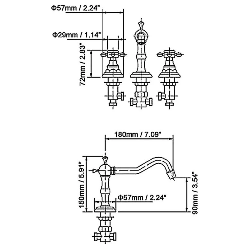 Easy Control: Cross handles offer precise control on water flow and temperature.