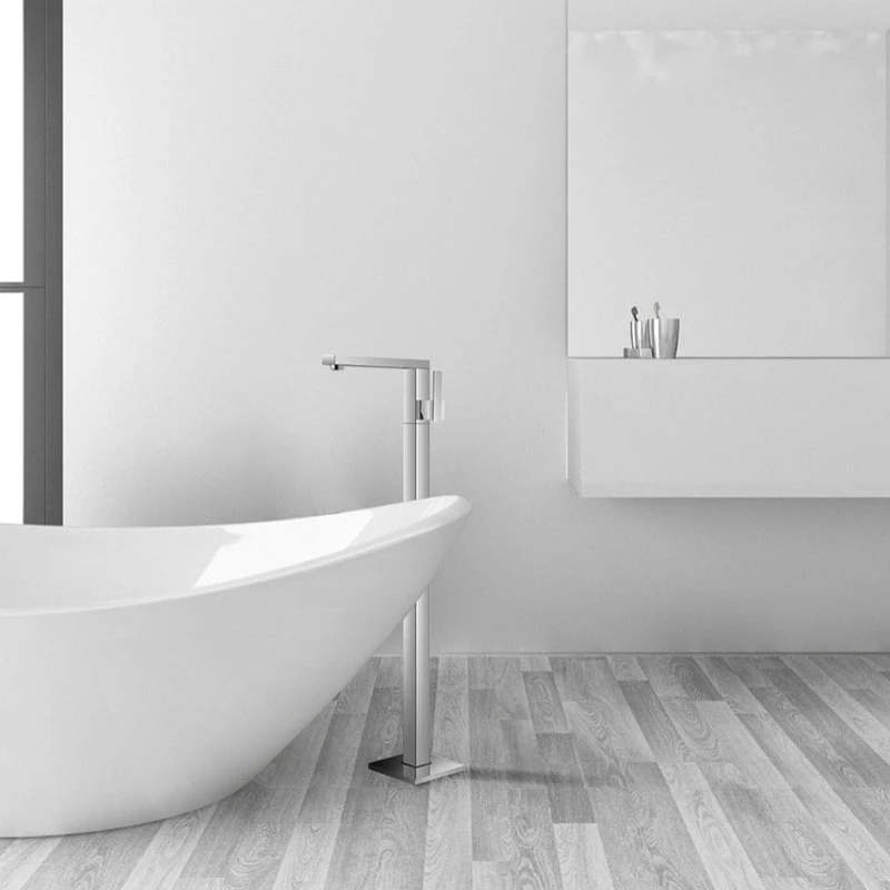 With the ultra-contemporary styling, Dree Faucet Collection features 90 Degree that brings a clean, minimalist aesthetic appeal to your home. The straight lines and right angles make this freestanding tub faucet ideal for many contemporary bathroom designs. It is coated with polished chrome for a mirror like finish to show hospitality.