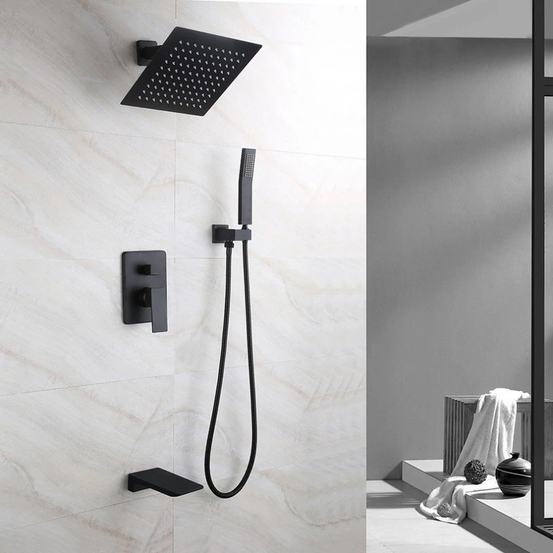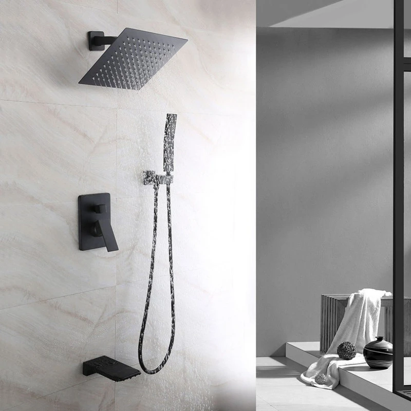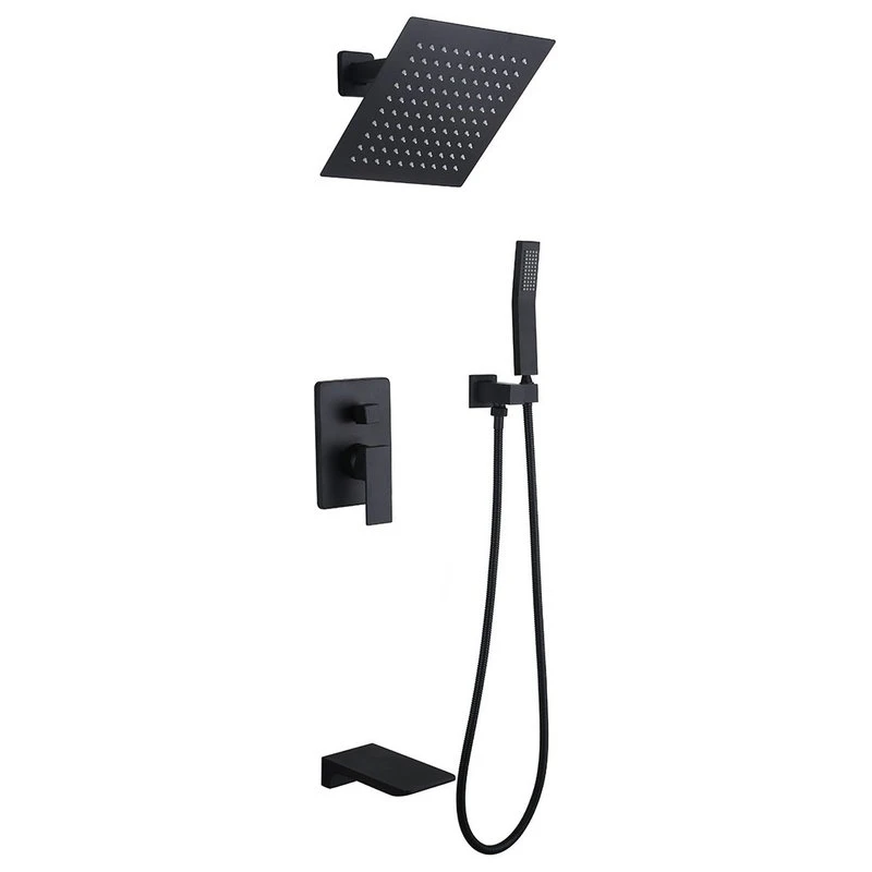 – Includes 10″ x 10″ (250mm x 250mm) rain shower head, hand shower, wall-mount shower arm, 3-functional valve and a tub spout.