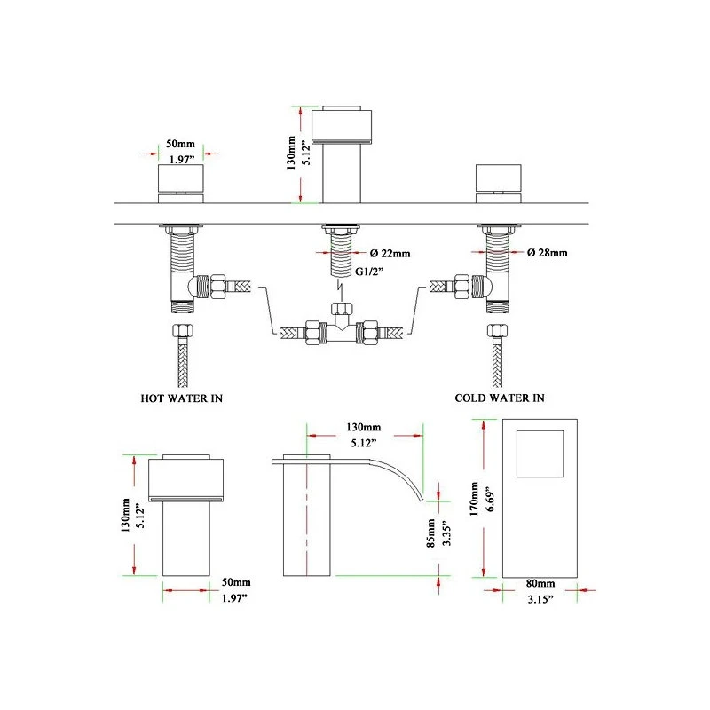 - SPOUT HEIGHT (measured from mounting surface to spout outlet):3.35″ / 85mm