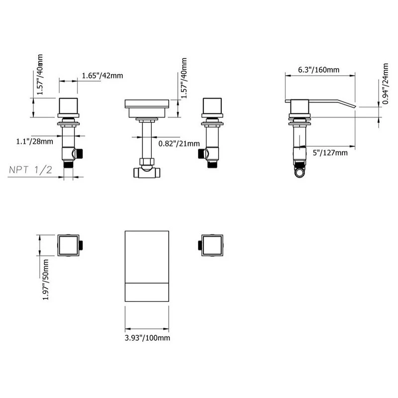 - SPOUT HEIGHT (measured from mounting surface to spout outlet):1.42″ / 36mm