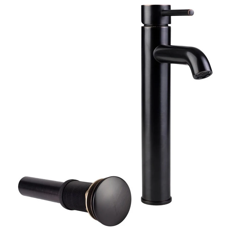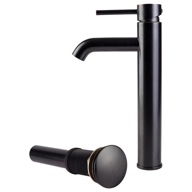 Give your bathroom an update with this European Vessel Sink Filler Faucet. The faucet features a modern European style with a gently angled spout in oil rubbed bronze finish. Unit comes with a matching push pop umbrella drain without overflow hole suitable for most vessel (non-overflow) sinks.