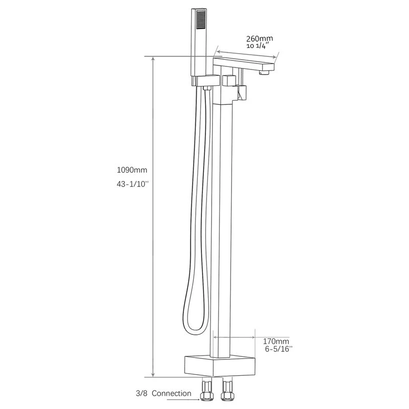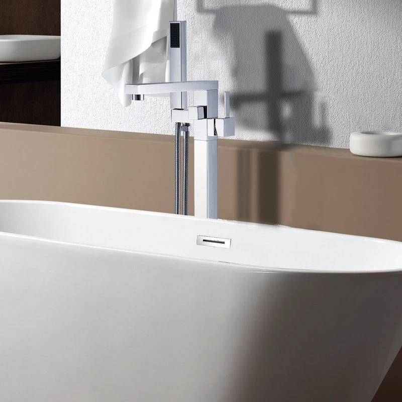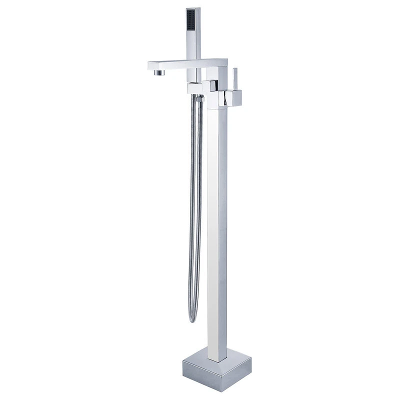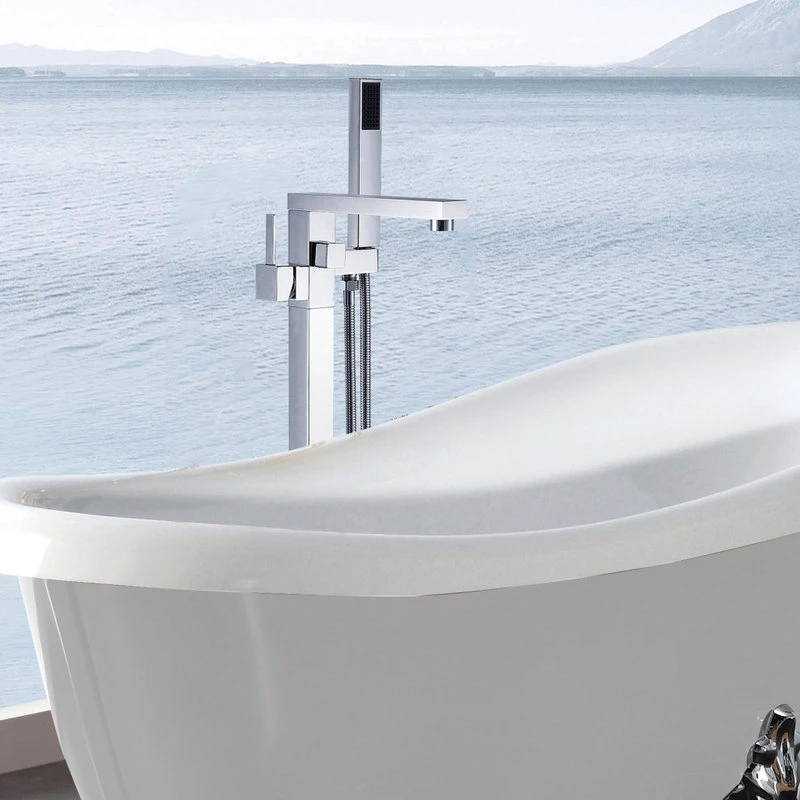This freestyle bathtub faucet is made of brass.It includes a shower hose and hand shower with a advanced valves.This modern stand-alone bathtub faucet adjusts the water temperature to avoid sudden hot and cold shocks. The modern design of this floor mounted bathroom faucet is intended to subtly complement your contemporary bathroom, adding more elegance to your bathroom. Hand Shower with shower hose, perfect for full body shower or cleaning the tub. Each faucet is with a finish that resists tarnishing, corrosion, and mineral buildup. That’s a good choice for your home improvement.