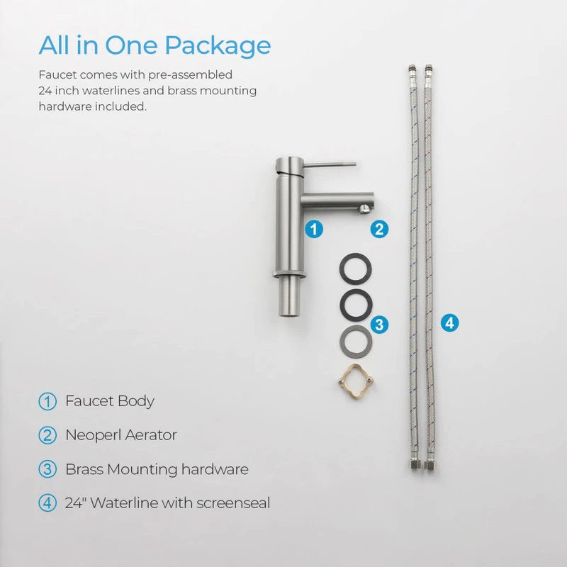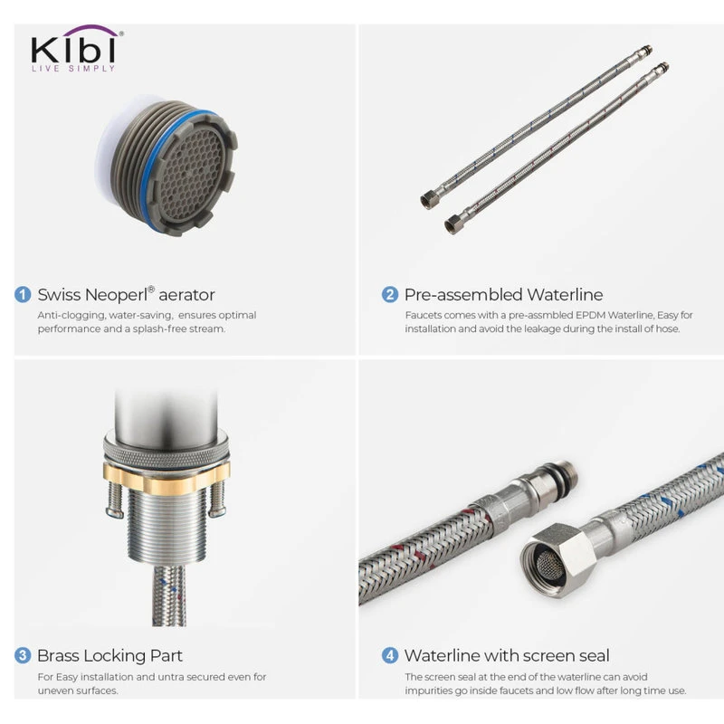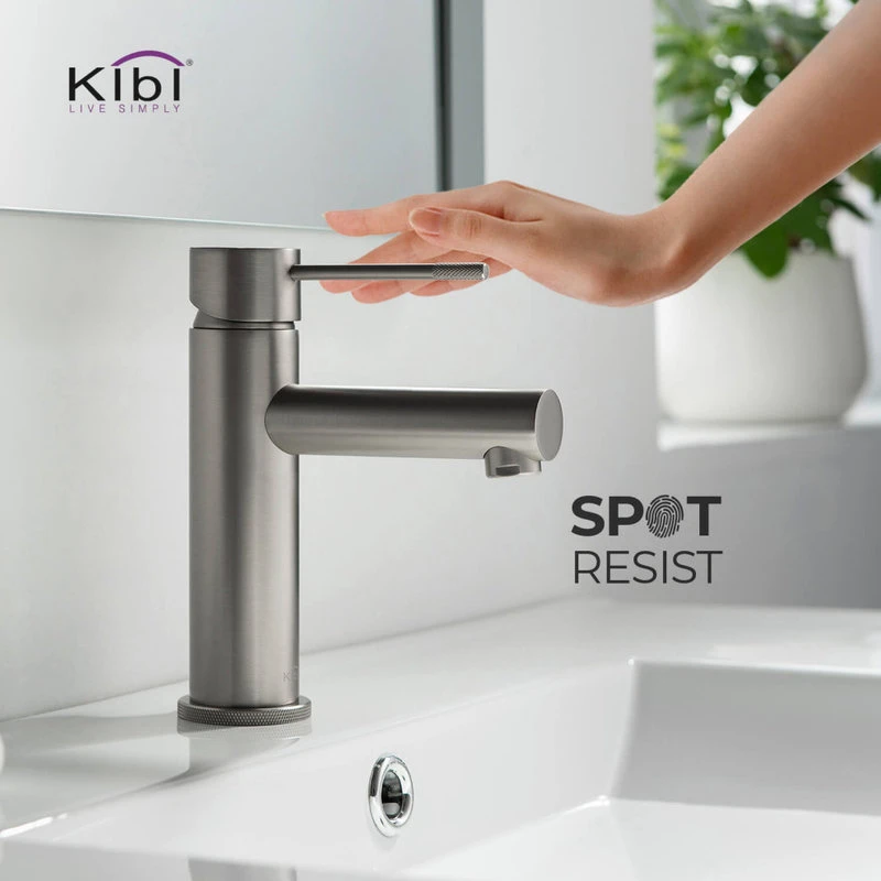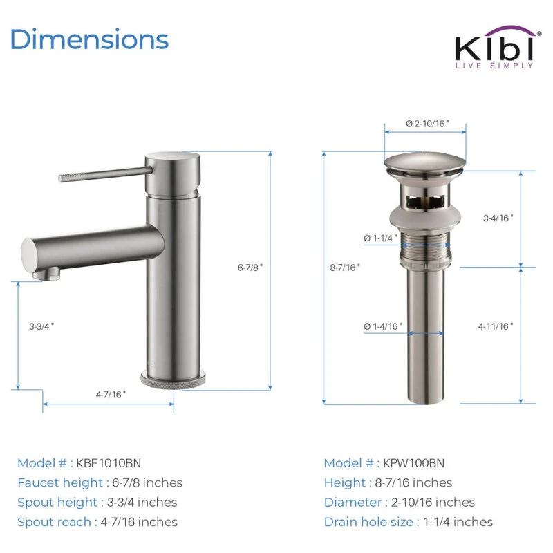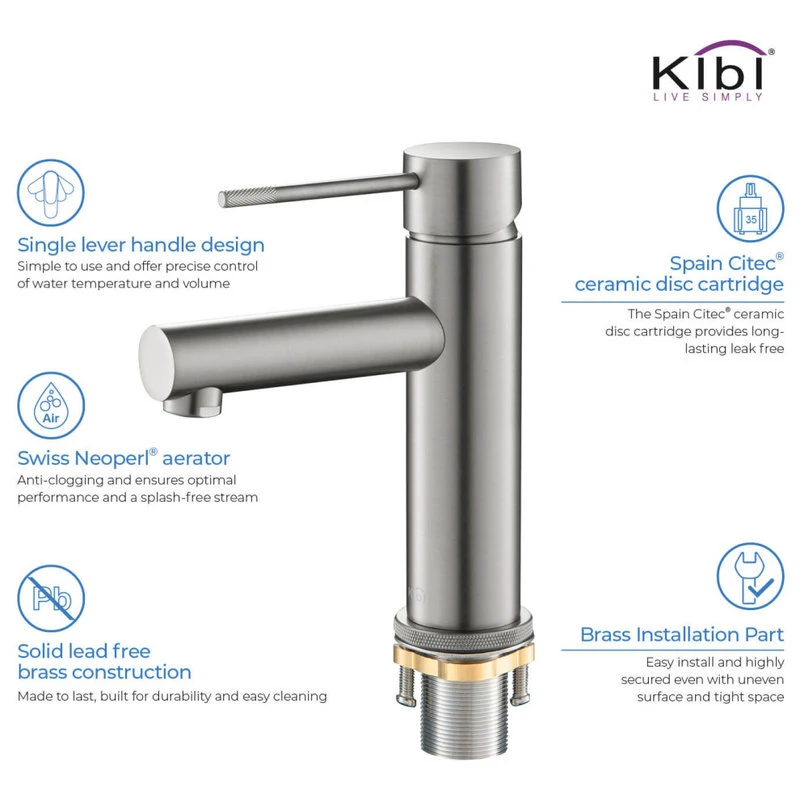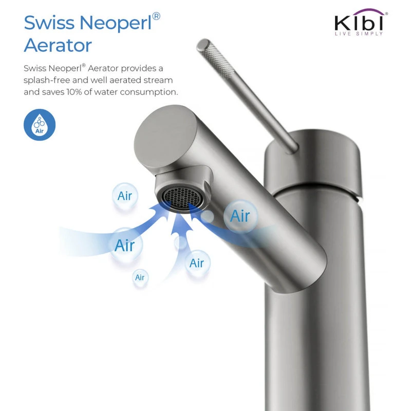 Kibi USA Circular X Brass Single Hole Bathroom Faucet KBF1010, Brush Nickel, With Drain