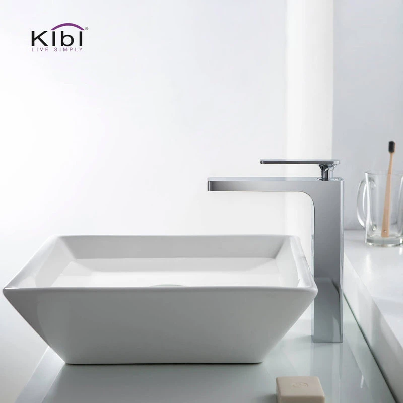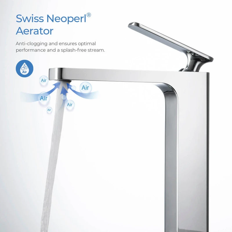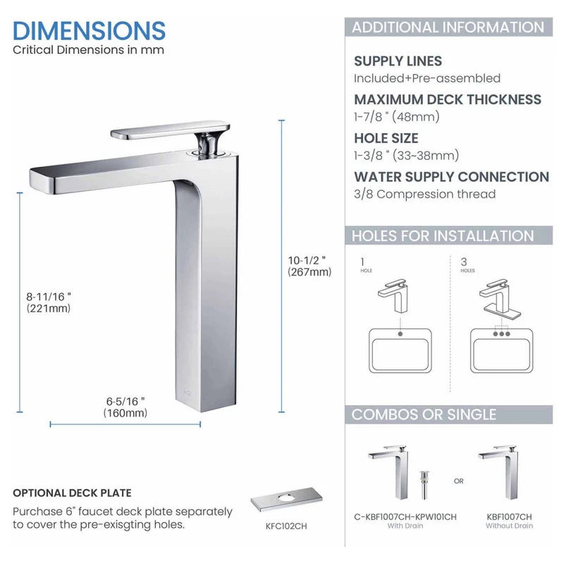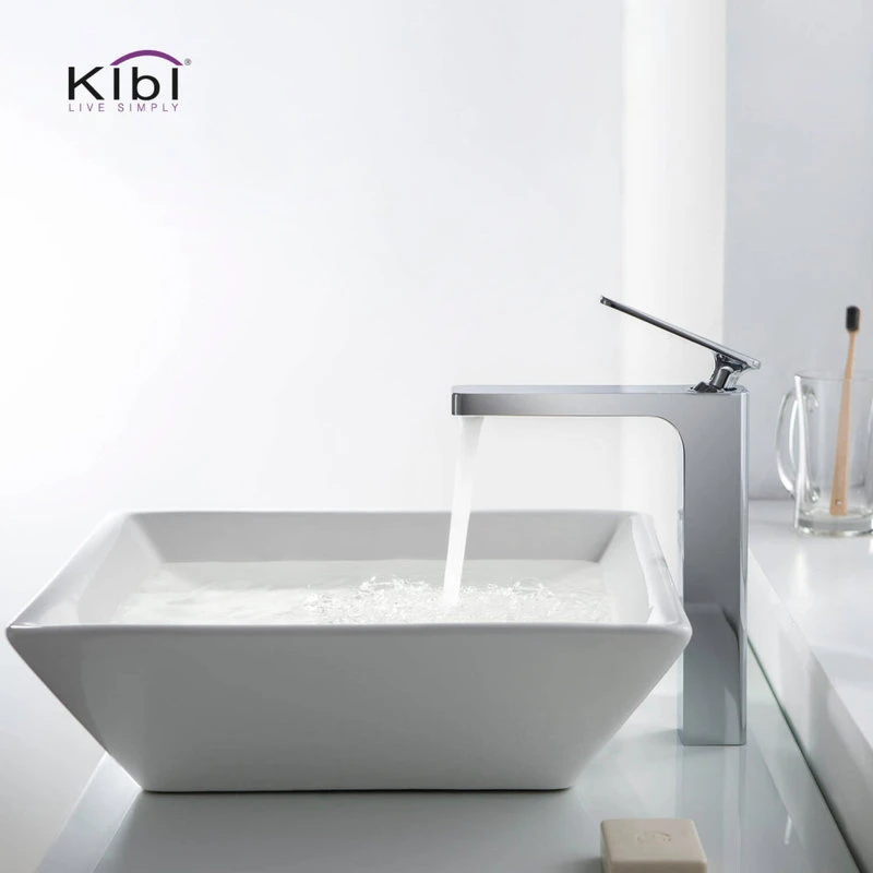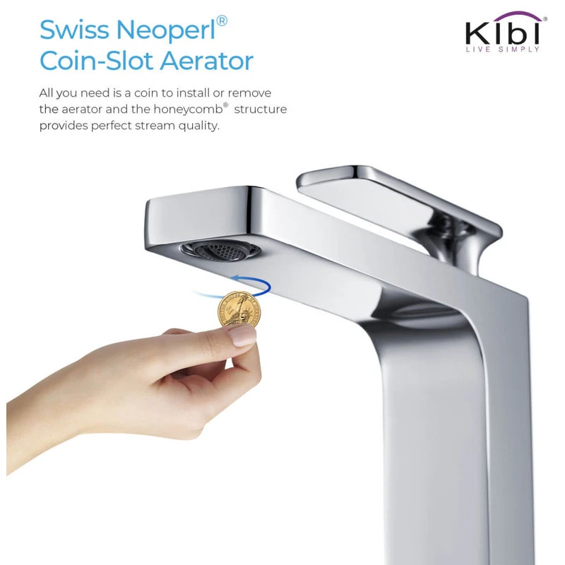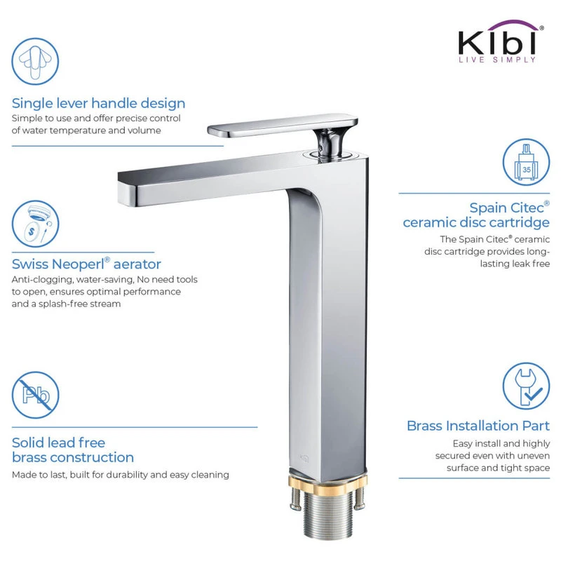 Kibi USA Infinity Single Handle Vessel Sink Faucet KBF1007, Chrome, W/O Drain