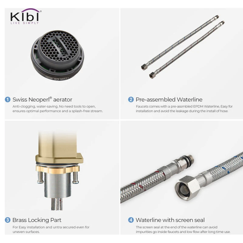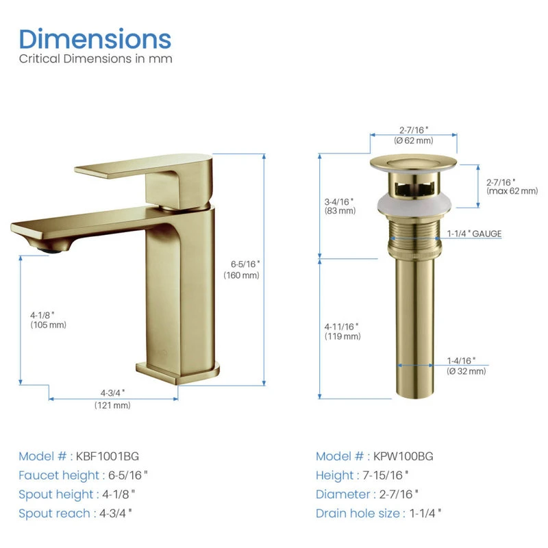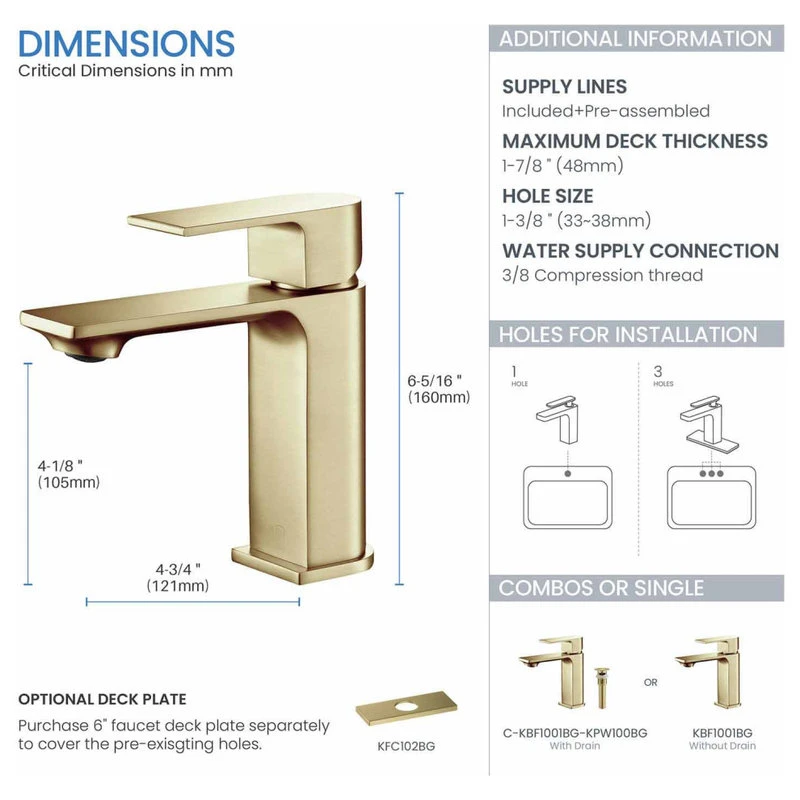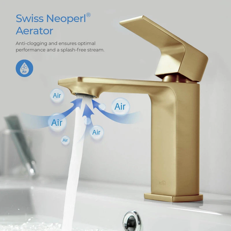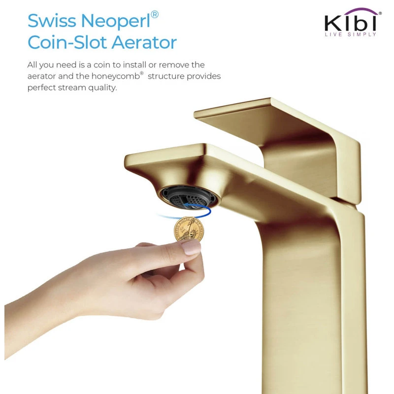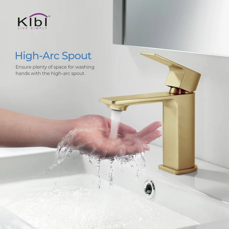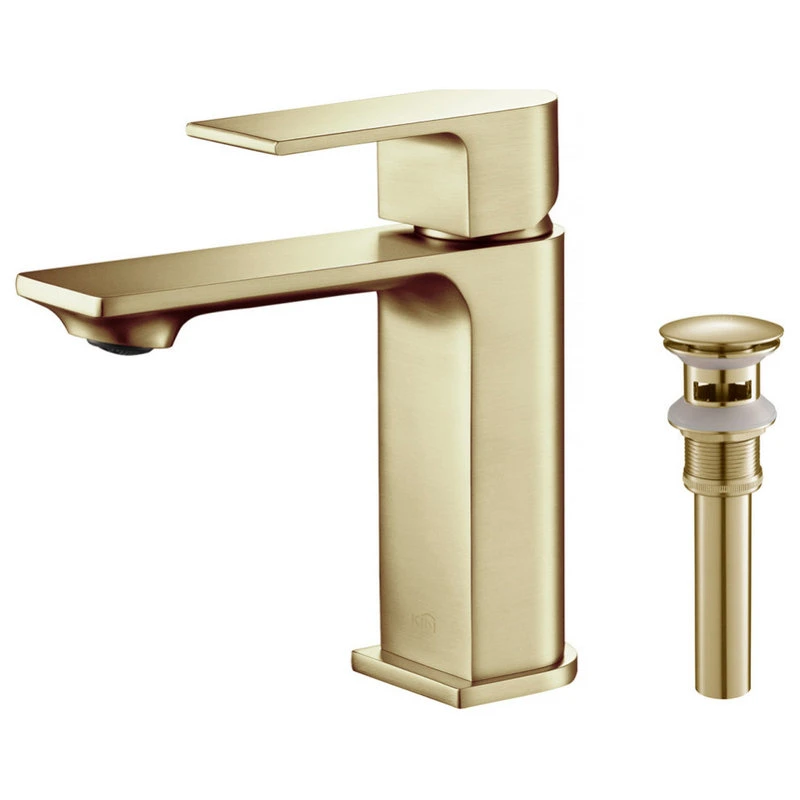 Kibi USA KIBI Mirage Single Handle Bathroom Faucet, Brush Gold, With Drain