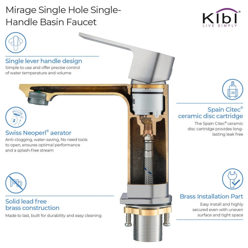 - Single handle ergonomics design for easy temperature and water flow control.