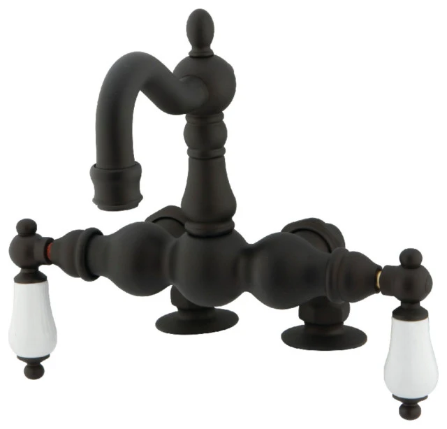 This clawfoot tub filler is constructed of high quality brass to ensure reliability and durability. Its premier finish resists tarnishing and corrosion. All mounting hardware is included and standard US plumbing connections are used.