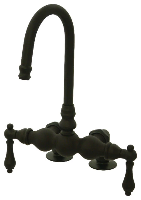 This clawfoot tub filler is constructed of high quality brass to ensure reliability and durability. Its premier finish resists tarnishing and corrosion. All mounting hardware is included and standard US plumbing connections are used.