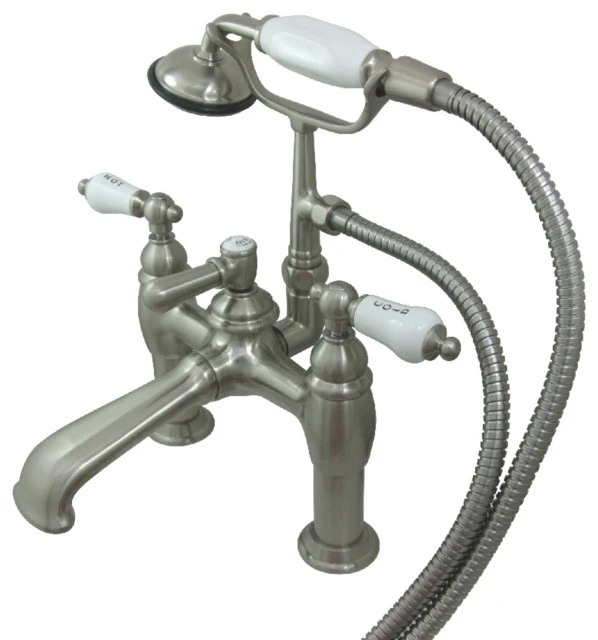 Kingston Brass 7″ Deck Mount Tub Faucet With Hand Shower, Brushed Nickel