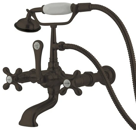 This clawfoot tub filler is constructed of high quality brass to ensure reliability and durability. Its premier finish resists tarnishing and corrosion. All mounting hardware is included and standard US plumbing connections are used.