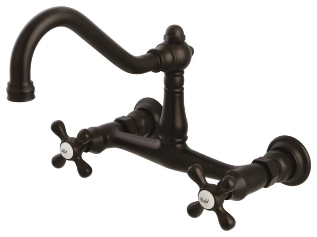Bring a traditional feel to your kitchen with the oil rubbed bronze Vintage Wall-Mount 2-Handle Vessel Sink Faucet. It is beautifully crafted from solid brass, to ensure the Vintage’s durability and reliability. A swivel spout makes for an easier time with dishes, and ceramic disc cartridges mean drip-free use. Featuring two metal cross handles and elegantly contoured edges, this faucet makes a lovely addition to a farmhouse sink.