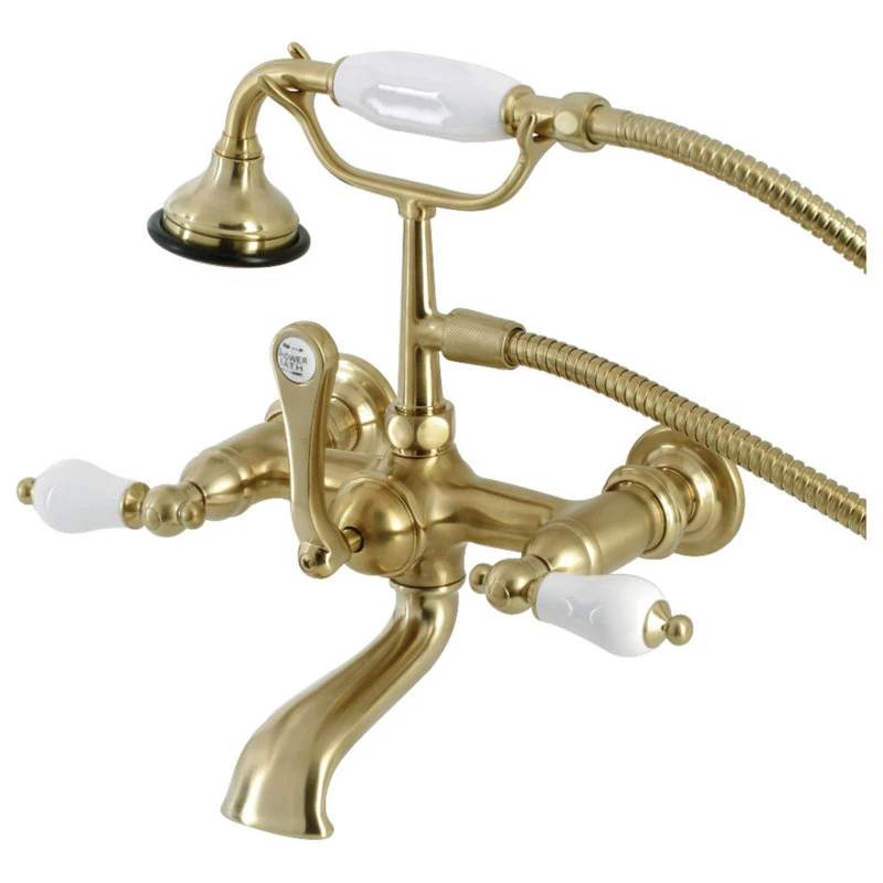 Kingston Brass AE553T7 7″ Wall Mount Tub Faucet With Hand Shower, Brushed Brass