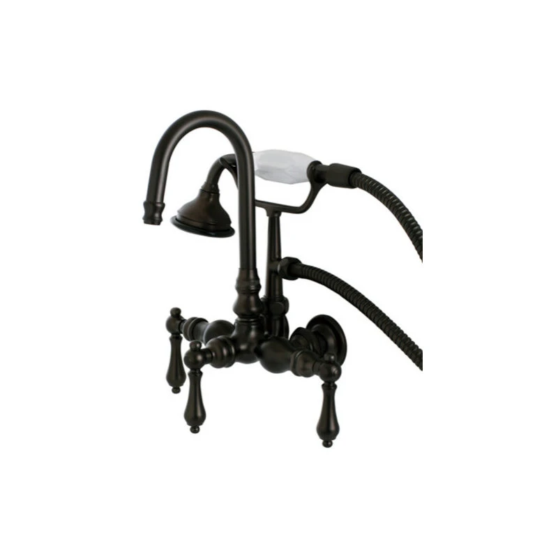 Wall mount clawfoot tub faucets are the perfect fixture to add decorative flair to your bathroom because of their unique architectural elements. With vintage opulence, this will complete your refined bathroom decorum with the help of its premium polished chrome finish and traditionally styled handheld shower. The solid brass construction also makes for a heavy, quality made product.Kingston Brass AE7T Features: