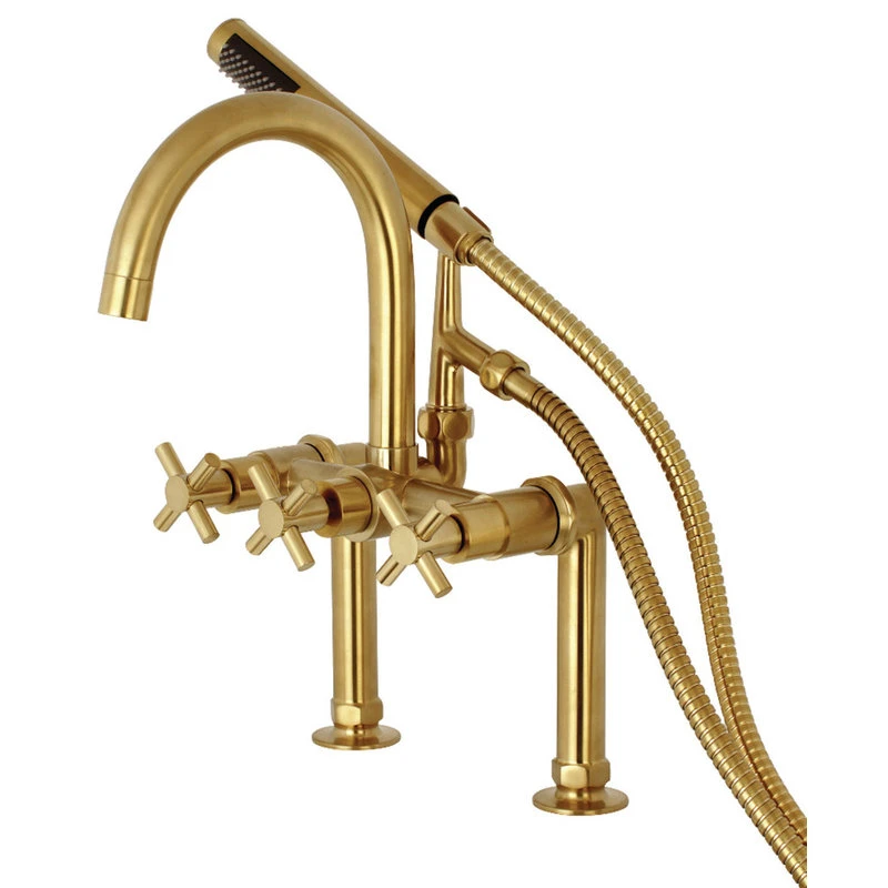 Kingston Brass Aqua Vintage 7″ Deck Mount Clawfoot Tub Faucet, Brushed Brass