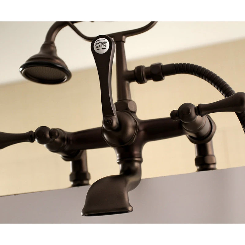 Kingston Brass Aqua Vintage 7″ Tub Faucet With Hand Shower, Oil Rubbed Bronze