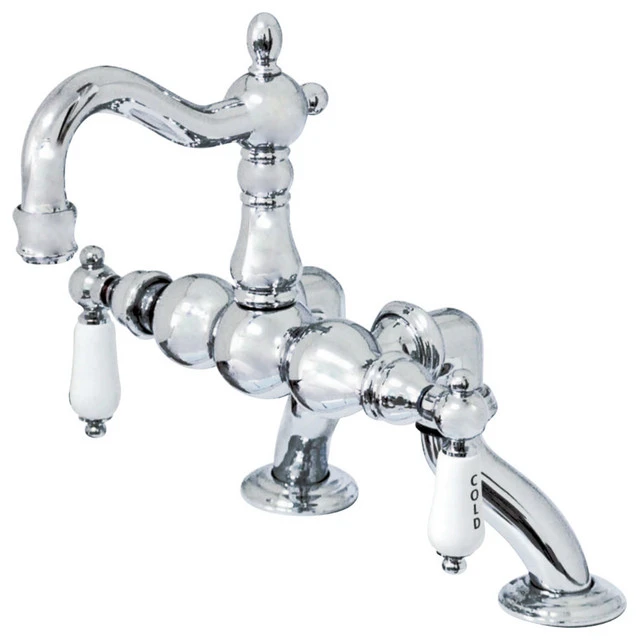 Kingston Brass CC2004T1 Vintage Clawfoot Tub Faucet, Polished ChromeVintage opulence finds itself within this deck-mount clawfoot tub faucet. As the perfect complement to your tub, this will complete your refined bathroom decorum with the help of its premium, glistening polished chrome finish and telephone style hand shower. The solid brass construction also makes for a heavy, quality made product.Product Dimension : 11″L x 6″W x 4.75″H, Item Weight (lbs) : 7.68