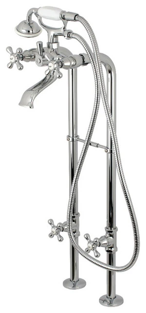 Kingston Brass CCK266K1 Kingston Freestanding Tub Faucet with Supply Line and Stop Valve, Polished ChromeDistinguished for its elegance, sophistication, and exquisite architecture, this freestanding tub faucet is the perfect fixture for any traditional home. Allow it to both complement your freestanding tub and act as a beautiful ornamental piece in your bathroom. As the perfect accompaniment to your tub, the Kingston Freestanding Tub Faucet with Supply Line, Stop Valve and Handle will surely complete your refined bathroom decorum with the help of its premium, glistening polished chrome finish and hand shower. The solid brass construction also makes for a heavy, quality made product.Product Dimension : 36.88″L x 9.06″W x 6.57″H, Item Weight (lbs) : 27.68