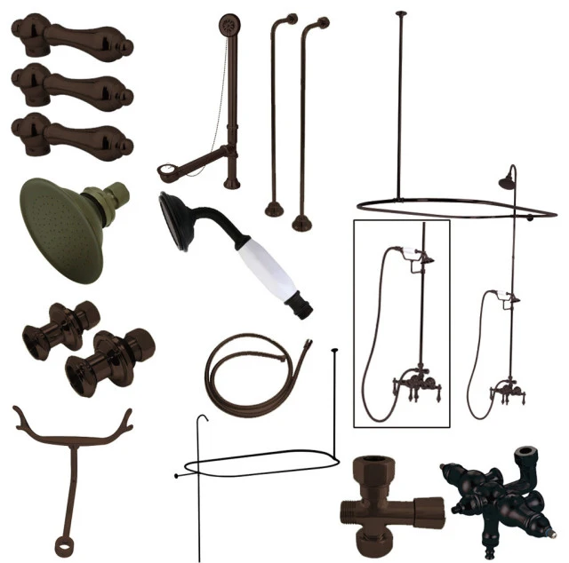 To wrap up your traditionally styled home decorum, incorporate the refinement of one of Kingston Brass’ clawfoot tub faucet packages for an all-inclusive and reliable complement to your clawfoot tub. A top-to-bottom beautiful styling is achieved with these coordinated pieces from the shower enclosure down to the drain. All included products are made from sturdy materials and a premium finish for a reliable and long lasting set to last for years to come. Includes faucet, water supply lines, angle stop valves, drain, and shower enclosure.