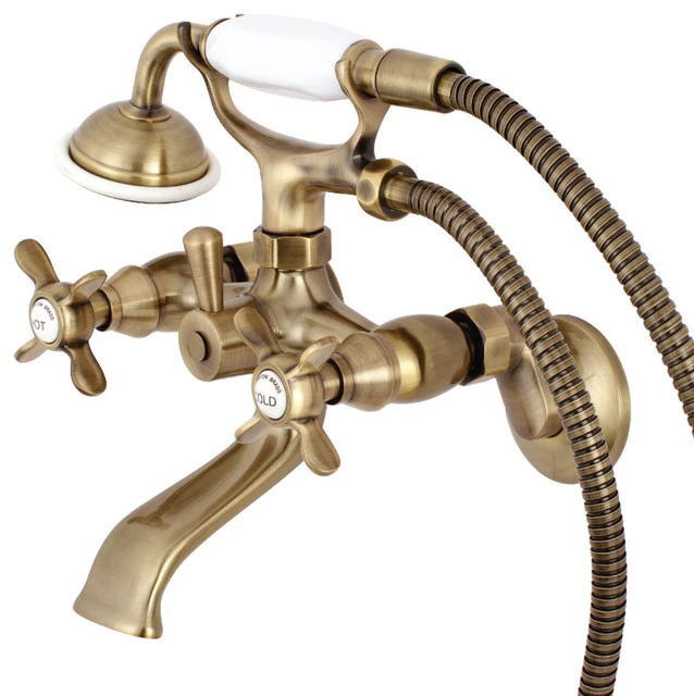 Kingston Brass Clawfoot Tub Faucet With Hand Shower, Antique Brass