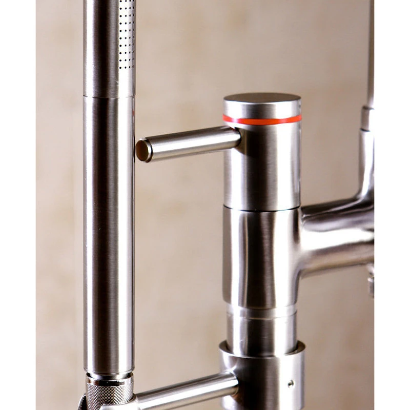 The sturdy Concord Tub Filler is made from solid brass with a sleek, satin nickel finish. It features cylindrical lever handles, an elegant gooseneck spout and a modern stick shower head with a 59-inch hose. This item pushes the boundaries of contemporary style with aesthetically pleasing function. Each individual piece is crafted from the finest materials for uncompromising quality and longevity.
