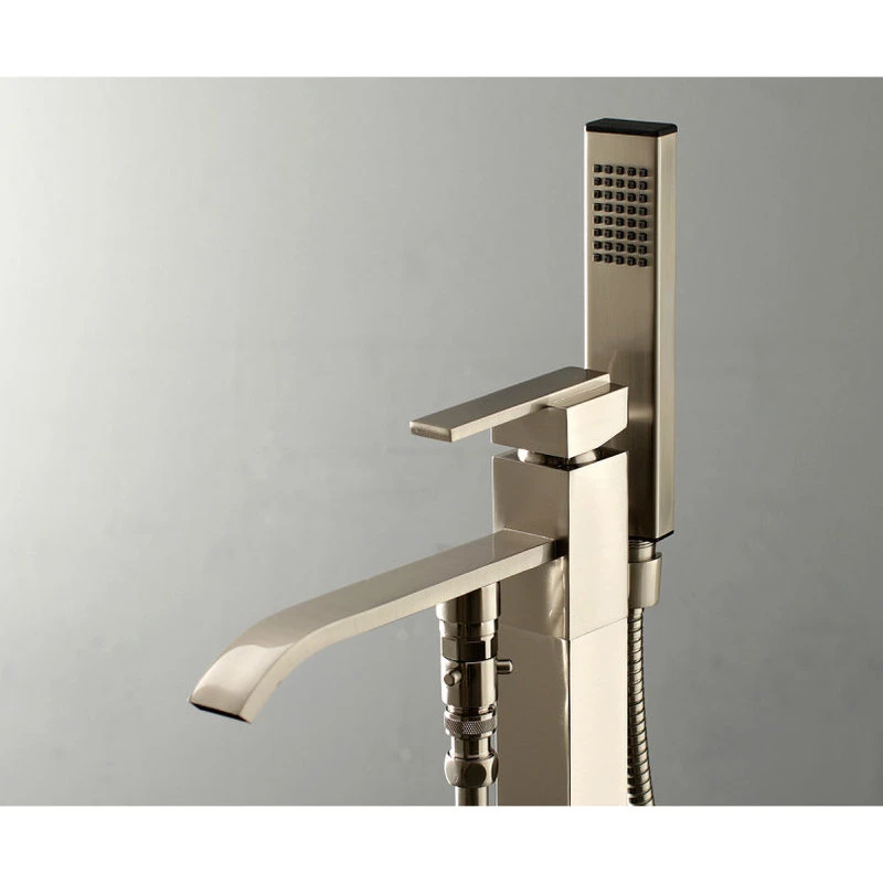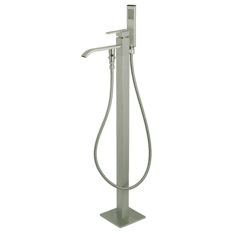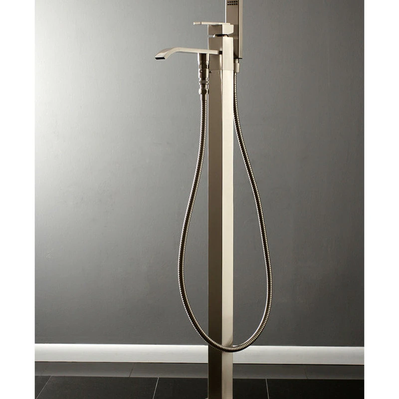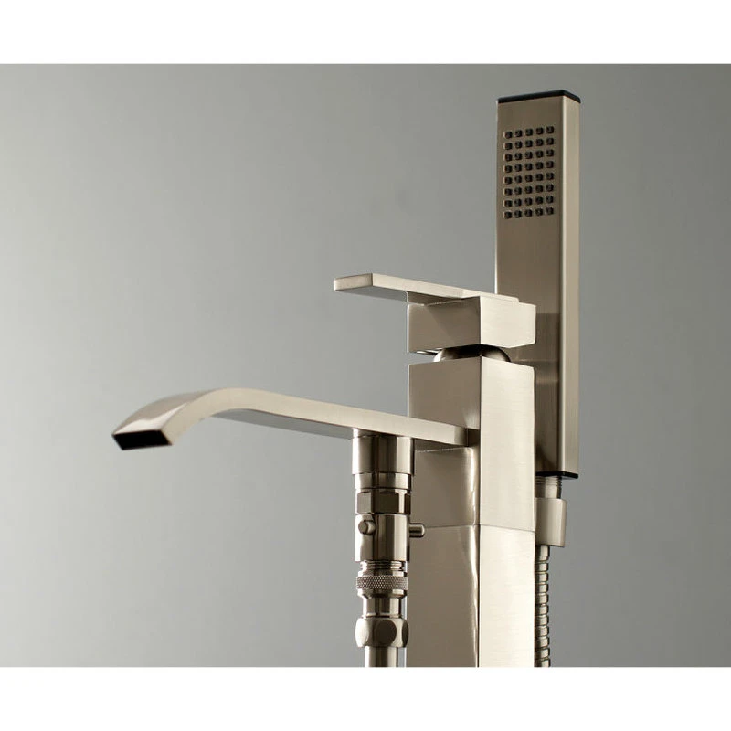 Distinguished for their stately configuration and artsy architecture, freestanding tub faucets are the perfect fixture for any contemporary home to both complement a freestanding tub and act as a beautiful ornamental piece in your bathroom. As the perfect accompaniment to your tub, the Executive freestanding tub faucet with hand shower will surely complete your refined bathroom decorum with the help of its premium, glistening brushed nickel finish and hand shower. The solid brass construction also makes for a heavy, quality made product.