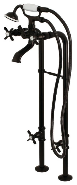 Distinguished for its elegance, sophistication, and exquisite architecture, this freestanding tub faucet is the perfect fixture for any traditional home. Allow it to both complement your freestanding tub and act as a beautiful ornamental piece in your bathroom. As the perfect accompaniment to your tub, the Kingston Freestanding Tub Faucet with Supply Line, Stop Valve and Handle will surely complete your refined bathroom decorum with the help of its premium, glistening oil rubbed bronze finish and hand shower. The solid brass construction also makes for a heavy, quality made product.